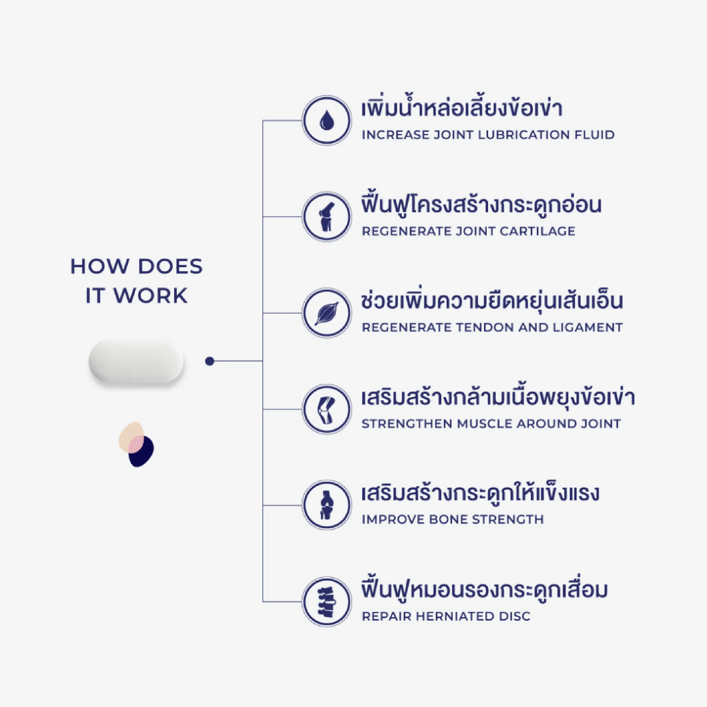 เป็นนวัตกรรมที่ฟื้นฟูกระดูก ข้อเข่า และหมอนรองได้แบบครบวงจร โดดเด่นด้วยส่วนผสมของ NEM® ที่เริ่มเห็นผลรวดเร็วใน 7-14 วัน ทานต่อเนื่องได้ระยะยาว โดยไม่มีผลข้างเคียงอันตราย